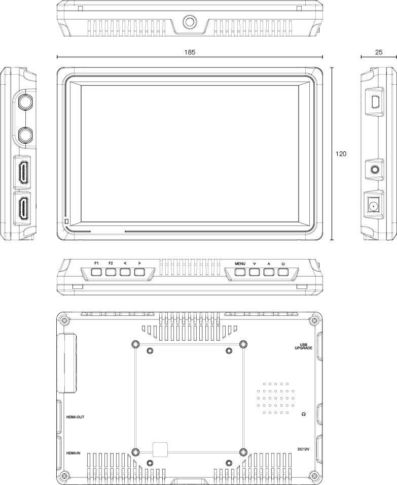 FEELWORLD FW279S provides 7" an 8-bit IPS screen with 1920x1200 resolution, 323ppi pixel density, professional color calibration to overcome natural LCD color drift. The FW279S displays sharper images, better text clarity and color reproductions regardless of your shooting conditions. The FW279S has a wide viewing angle so that everyone on set can review the action.